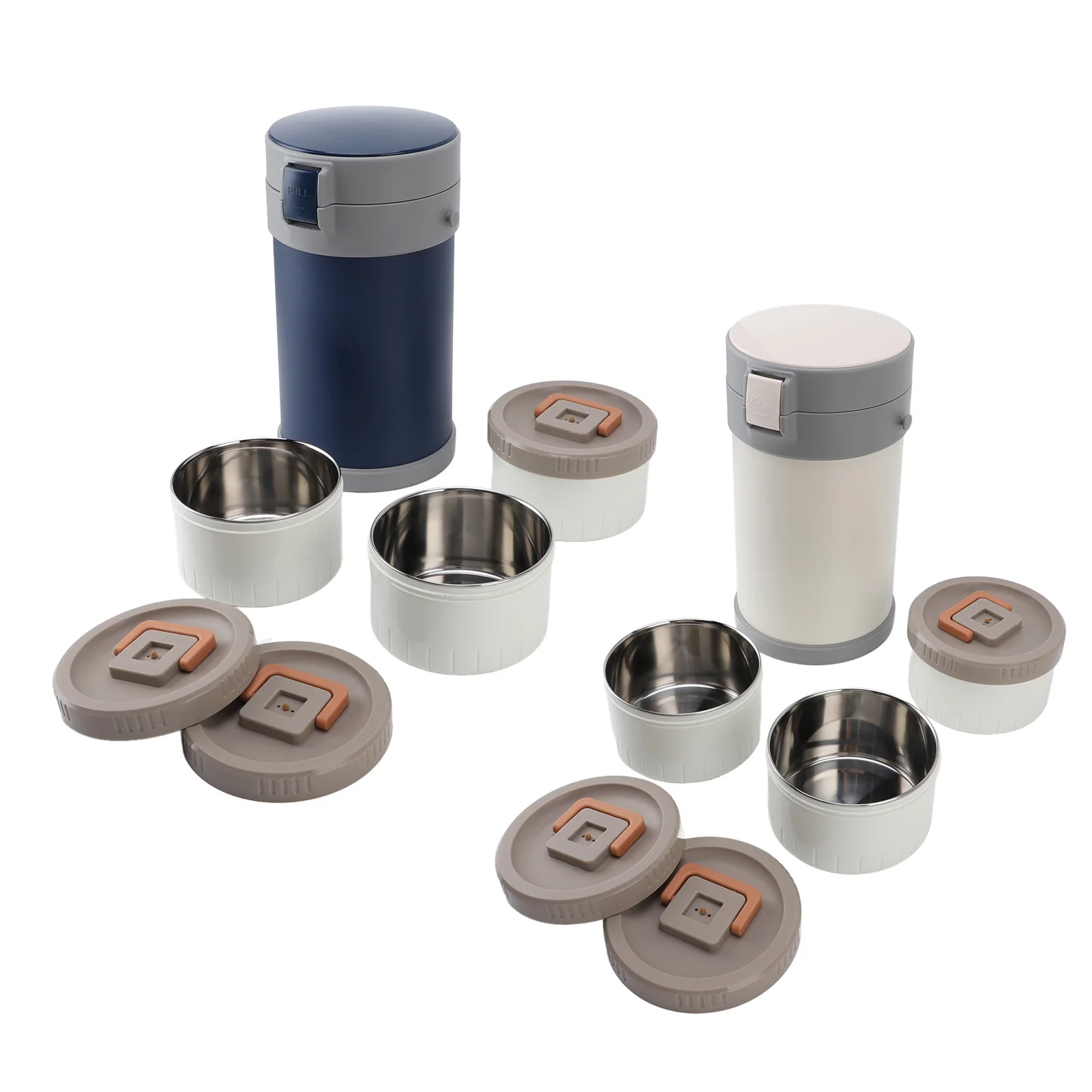 2.3L 3 Tier Insulated Food Thermal Jar 304 Stainless Steel Soup Cup Thermos Containers Lunch Box with Shoulder Strap For School