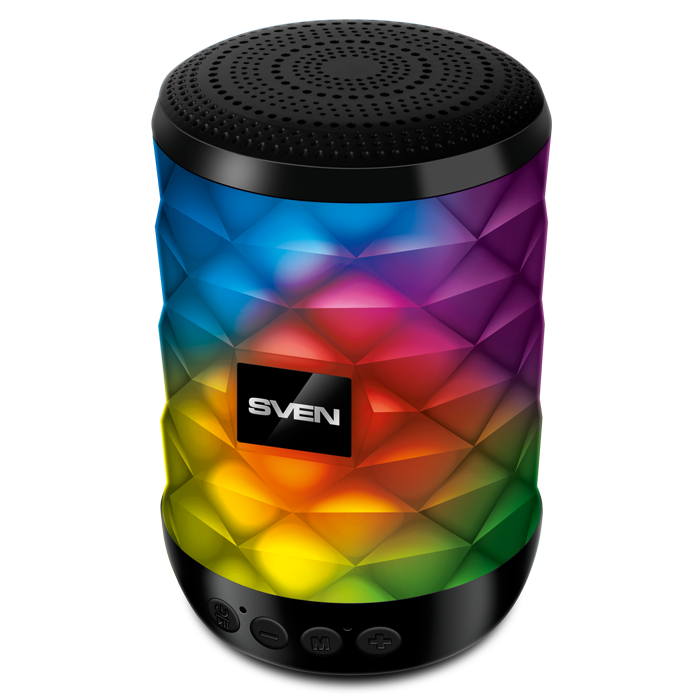 Портативная акустика SVEN PS-55, 5 Вт, FM, AUX, USB, microSD, Bluetooth, подсветка, черный (SV-021146), PS-55