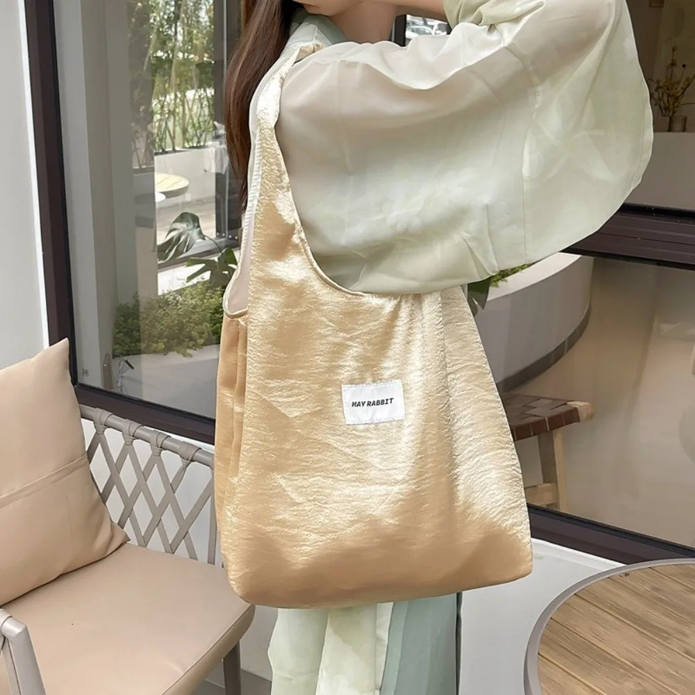 Портативная большая вместительная атласная шелковая сумка-тоут, роскошная элегантная простая сумка на плечо, складная легкая сумка для покупок под мышками, подарок