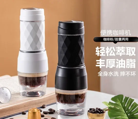 Портативная кофемашина для кемпинга и путешествий, текстурированная, Черная
