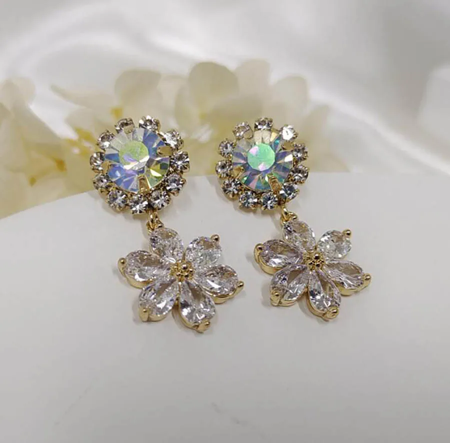 IU Korean 22 new zircon flower sweet girl stud earrings for women summer shiny zircon romance fashion jewelry