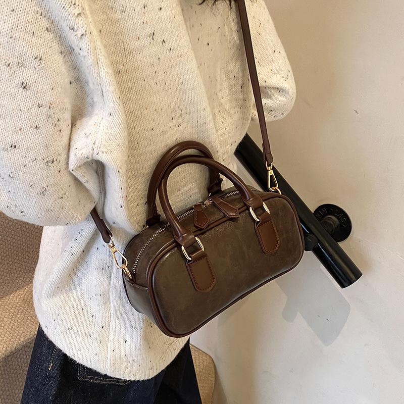 Портативная модная повседневная сумка для боулинга женская новая ретро маленькая квадратная сумка высокого класса простая сумка через плечо темный кофе