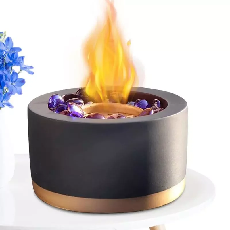 Портативная настольная миска для огня, бетонный столешница для потирания камина, мини-камин для дома, долгое горение