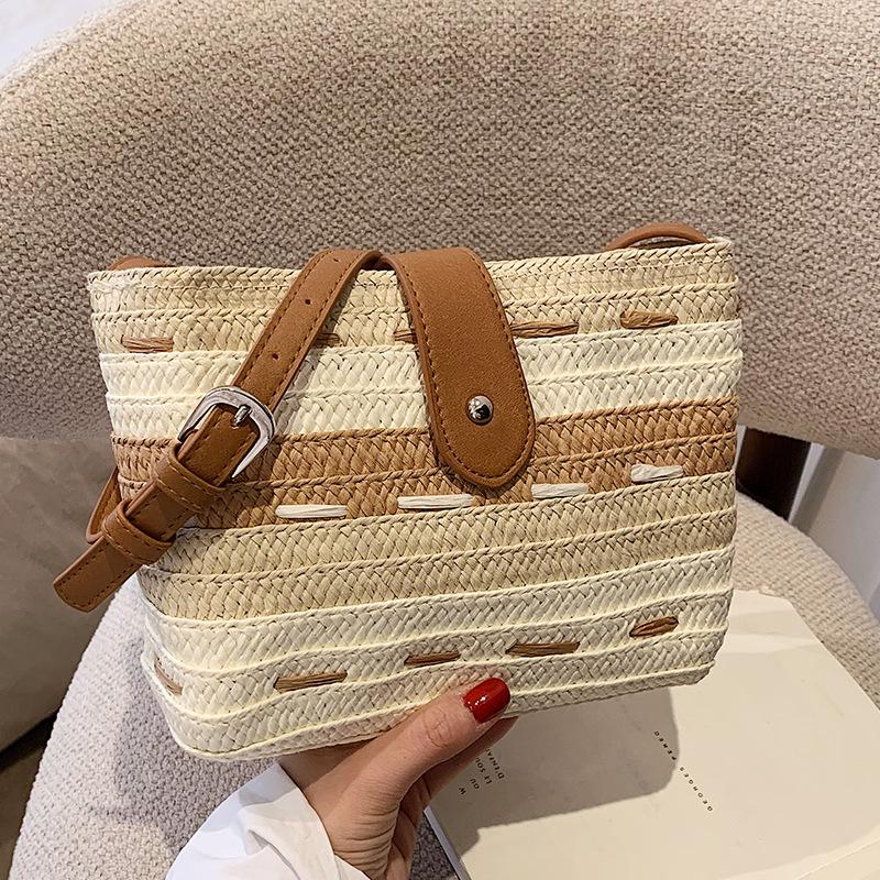 Портативная плетеная соломенная сумка женская 2025 новая универсальная высококлассная весенне-летняя пляжная сумка для отпуска на море бежевый