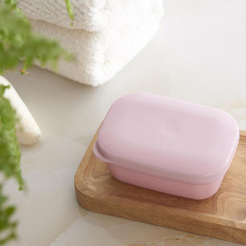 Портативная прямоугольная мыльница со сливным слоем и крышкой. Стильная мыльница для туристической школы. розовый