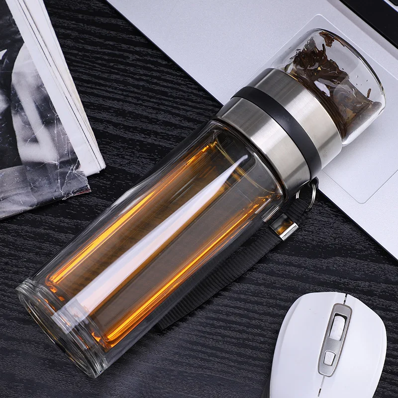 Портативная стеклянная чайная бутылка, разделительная кружка с двойными стенками для чая, простая изоляция, семейная чашка для чая, бутылка для воды