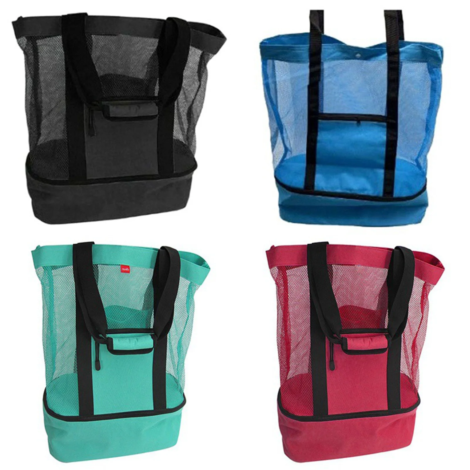 Портативная сумка для ланча с изоляцией и двумя отделениями, сумка-холодильник для пикника, сумка для пляжа и бассейна, Сетчатая Сумка для п...