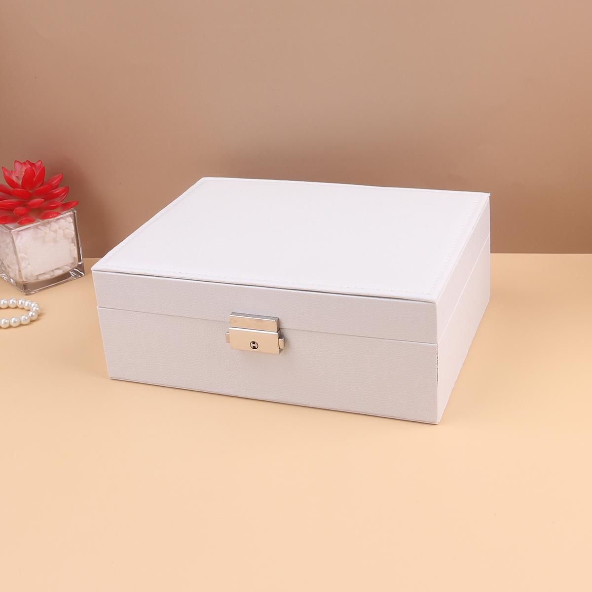 Портативная шкатулка для косметики принцессы, маленькая простая шкатулка для сережек, браслета, кольца, двухслойная шкатулка для хранения ожерелий белый