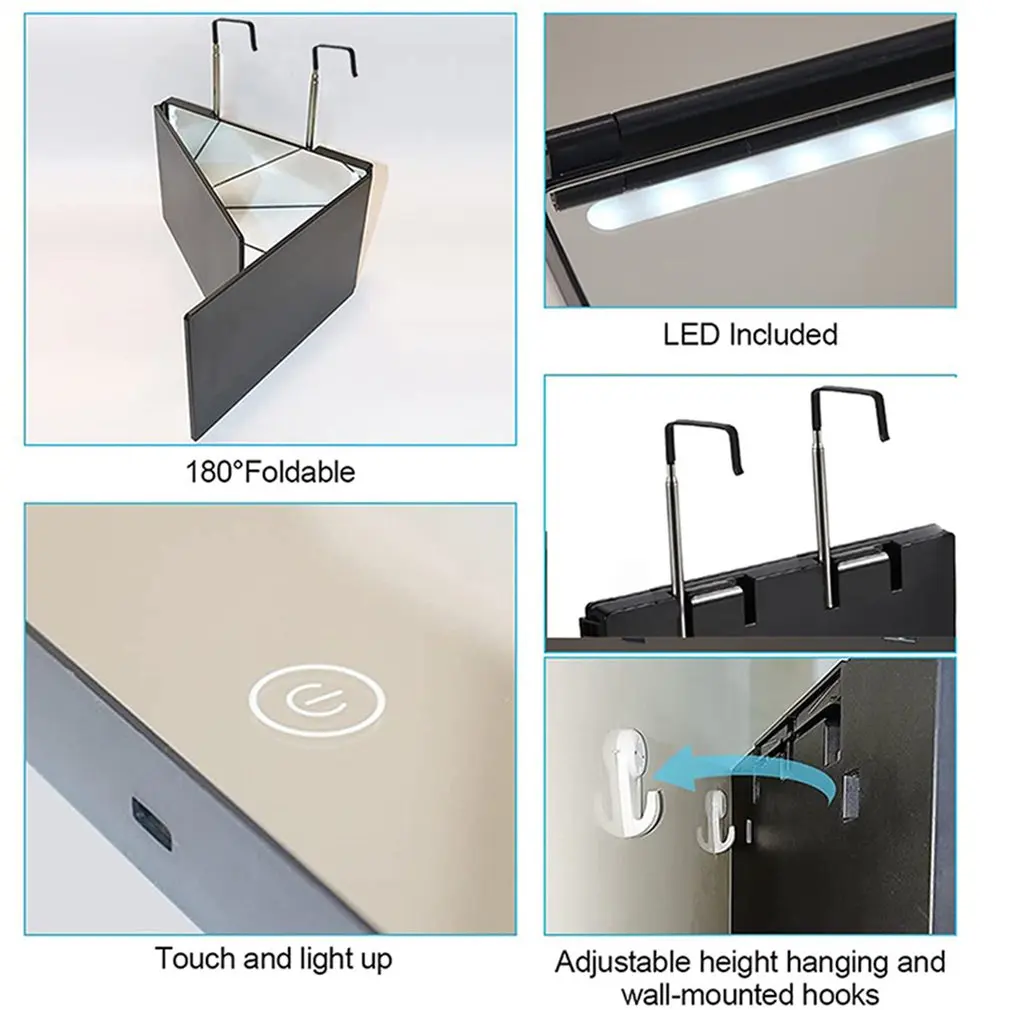 Портативное зеркало для парикмахерской с подсветкой, выдвижное и регулируемое зеркало для макияжа, подвесное трехскладное зеркало