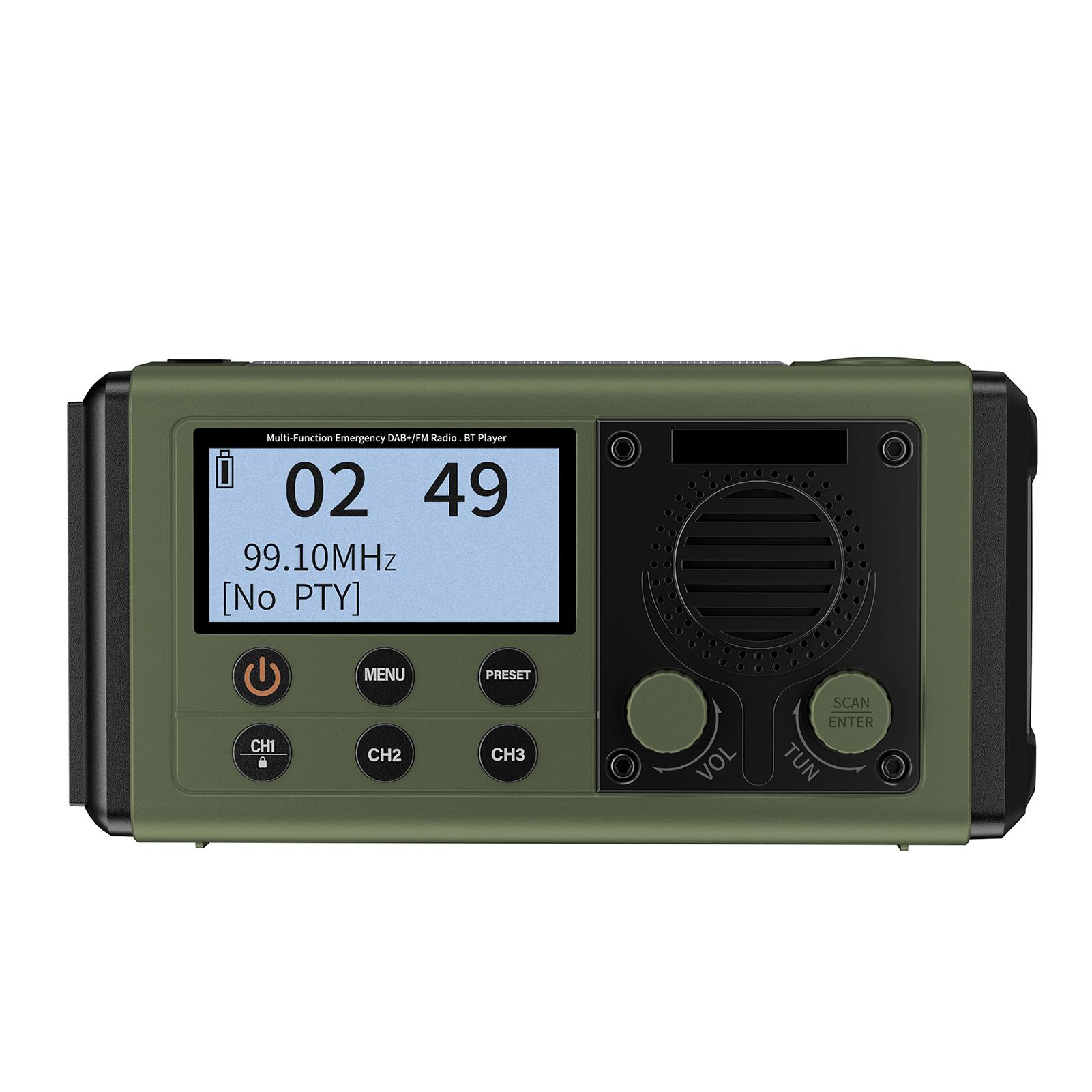 Портативное DAB+FM радио, Многофункциональное аварийное радио, BT-динамик, 10000 мАч, Солнечная ручная динамо-машина армия зеленый