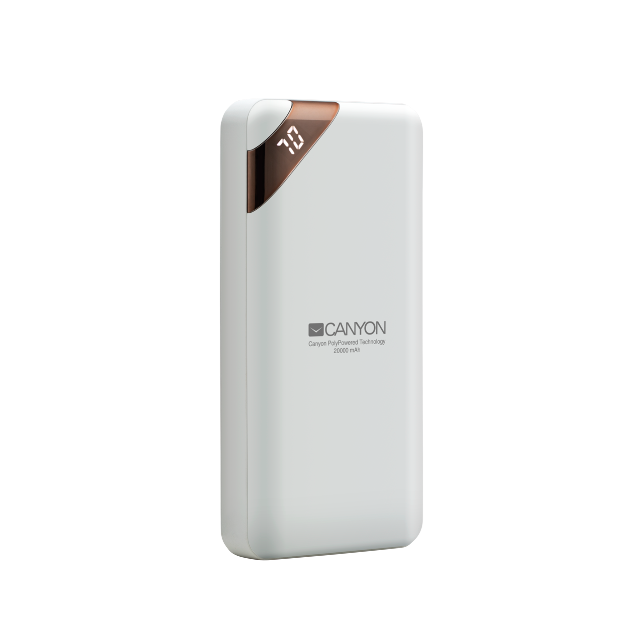 Портативный аккумулятор (Powerbank) Canyon CNE-CPBP20W, 20000mAh, 2xUSB, 2.1A, белый (CNE-CPBP20W), CNE-CPBP20W