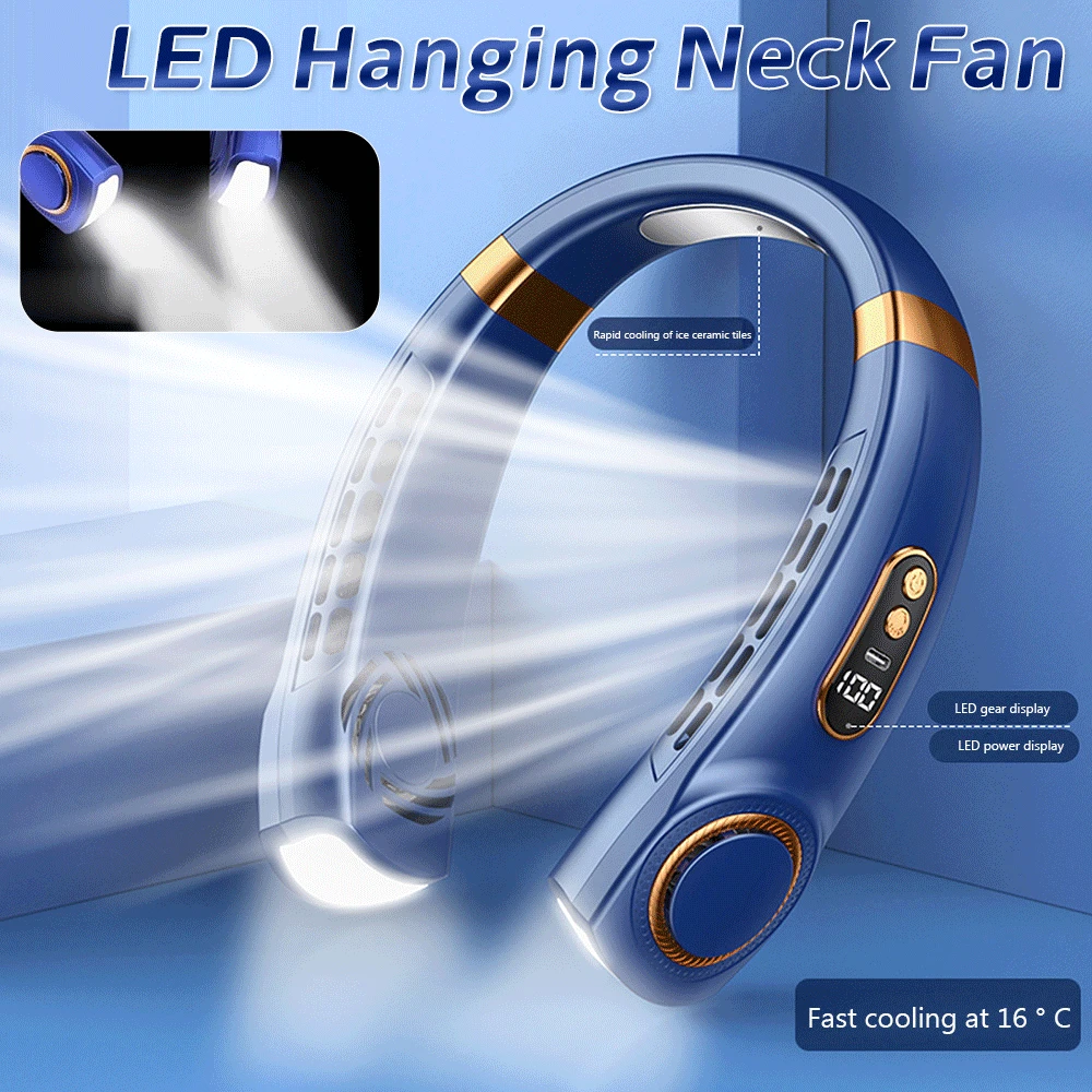 Портативный бесшумный Usb-вентилятор для шеи с цифровым светодиодным дисплеем