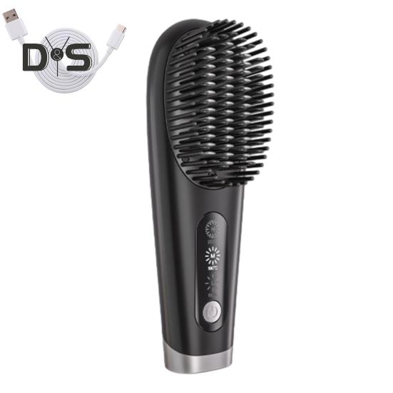 Портативный выпрямитель для волос, 3 температуры, быстрый нагрев, USB аккумулятор, отрицательные ионы, горячая щетка, электрическая расческа для укладки вьющихся волос чёрный