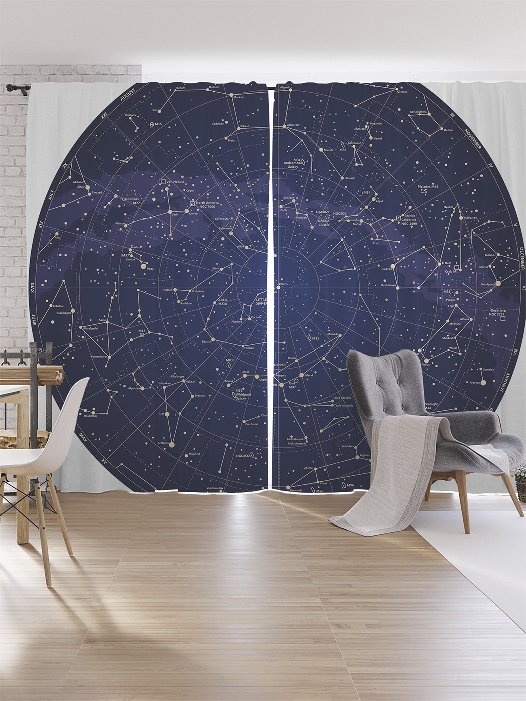 Шторы под лён JoyArty "Астрологический глобус", серия Oxford DeLux, 340х265 см, Астрологический глобус