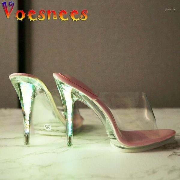 slippers voesnees women 2021 outside transparent heels platform super high thin noctilucent shine at night shoes woman1, Black