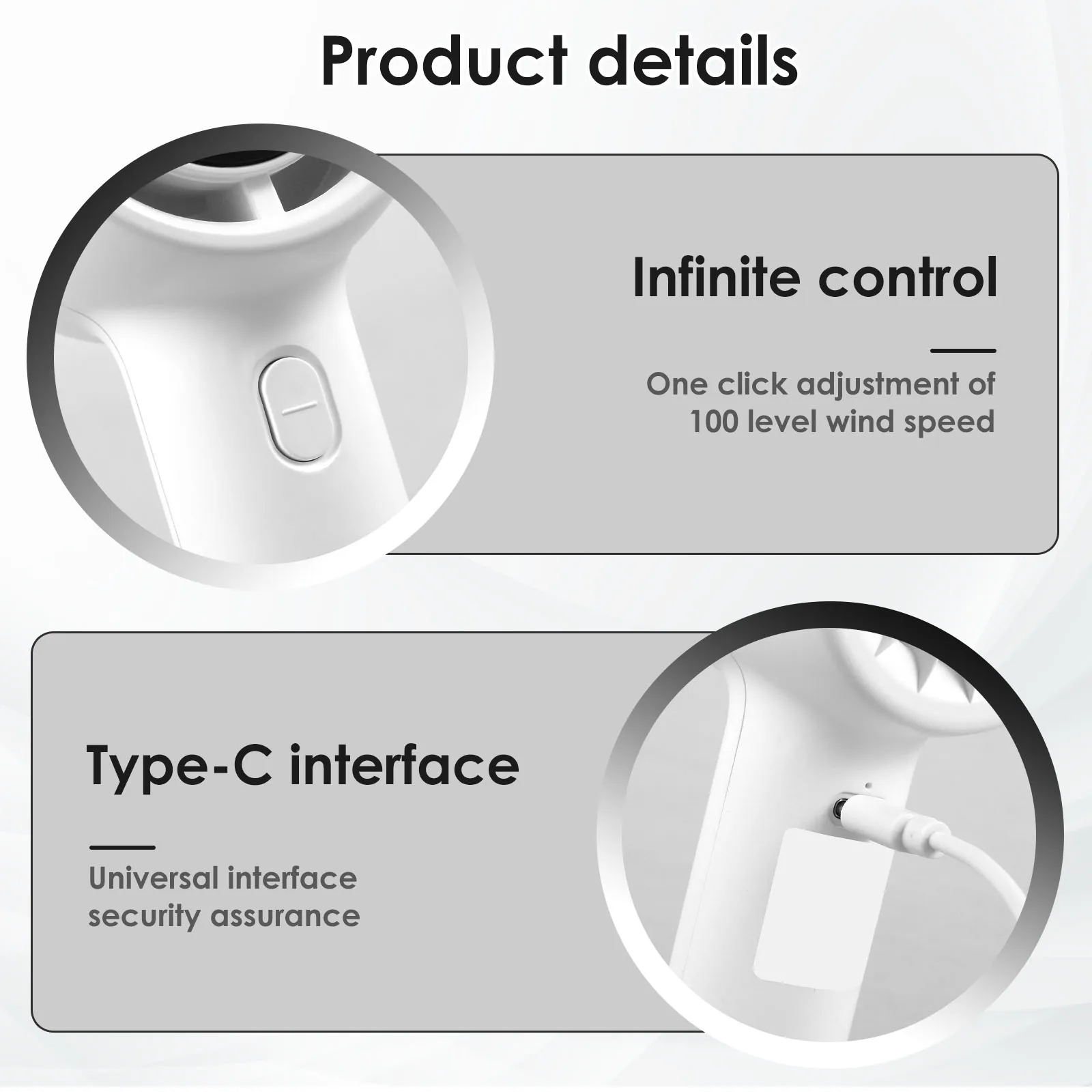 Портативный ручной мини-вентилятор с регулируемой скоростью от 1 до 100, 2000 мАч