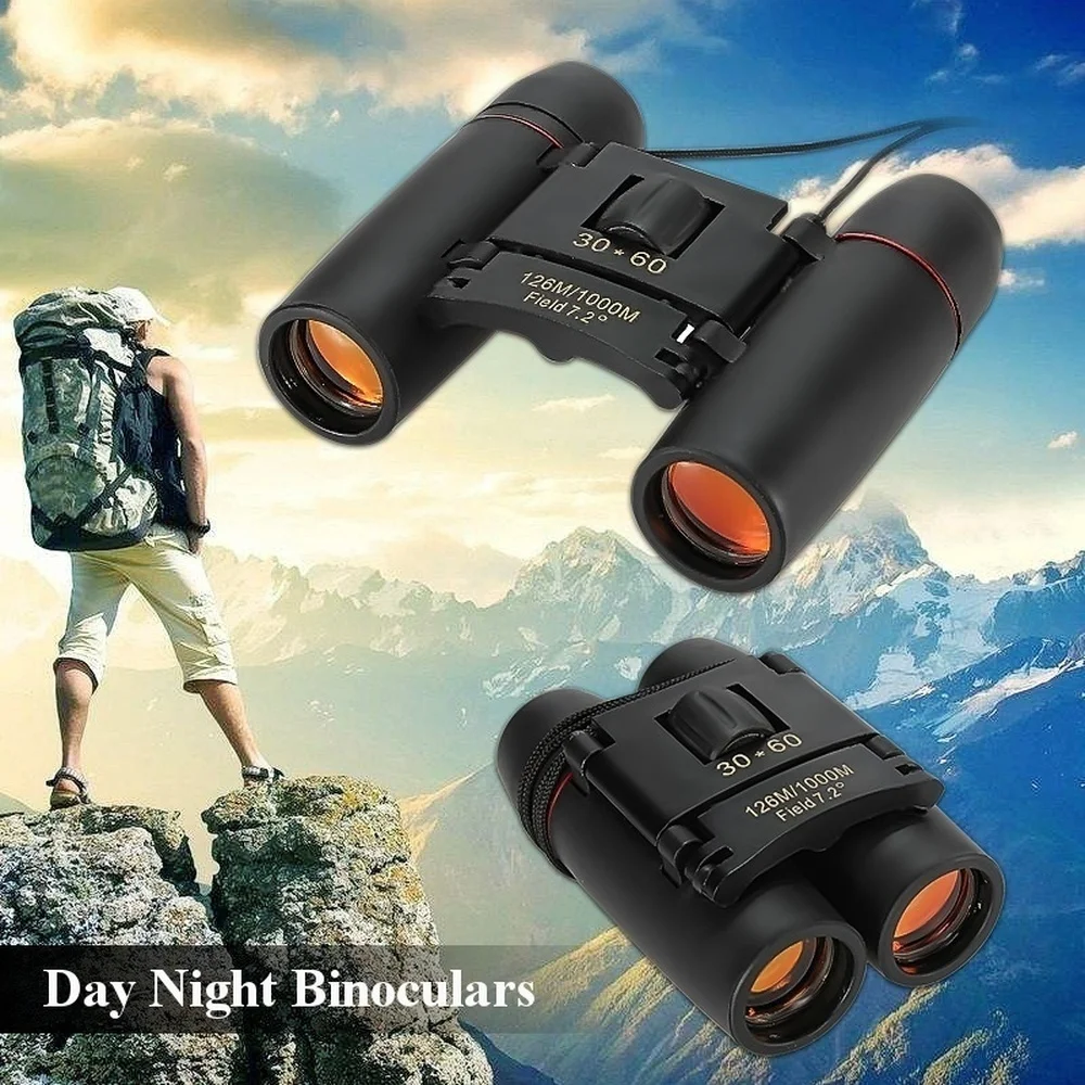 Портативный телескоп ночного видения складной мини-бинокль 30x60 126 м/1000 м с полосой + Сумка Черный