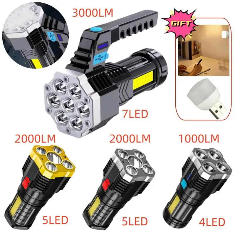 Портативный фонарик, водонепроницаемый ручной COB фонарь с аккумулятором USB, 4-7 ядер, для отдыха на открытом воздухе, походов