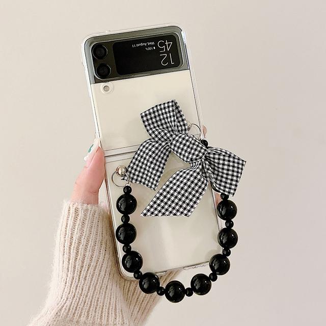 Портативный черный тканевый чехол с подвеской и бантом в клетку для Samsung Galaxy Z Flip 4 3 5g Жесткий ПК Прозрачный чехол For Samsung Z Flip 3