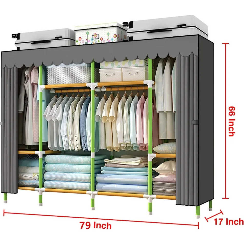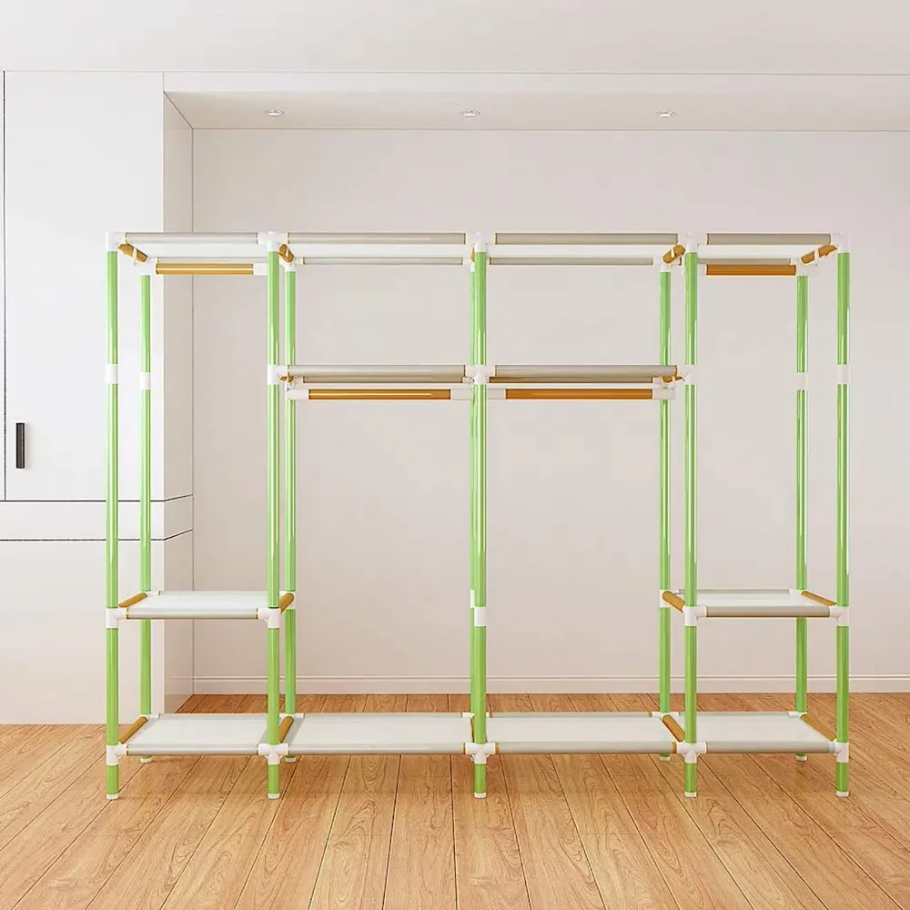 Портативный шкаф 79 дюймов для подвешивания одежды с 4 стержнями 25 мм цветная железная трубка