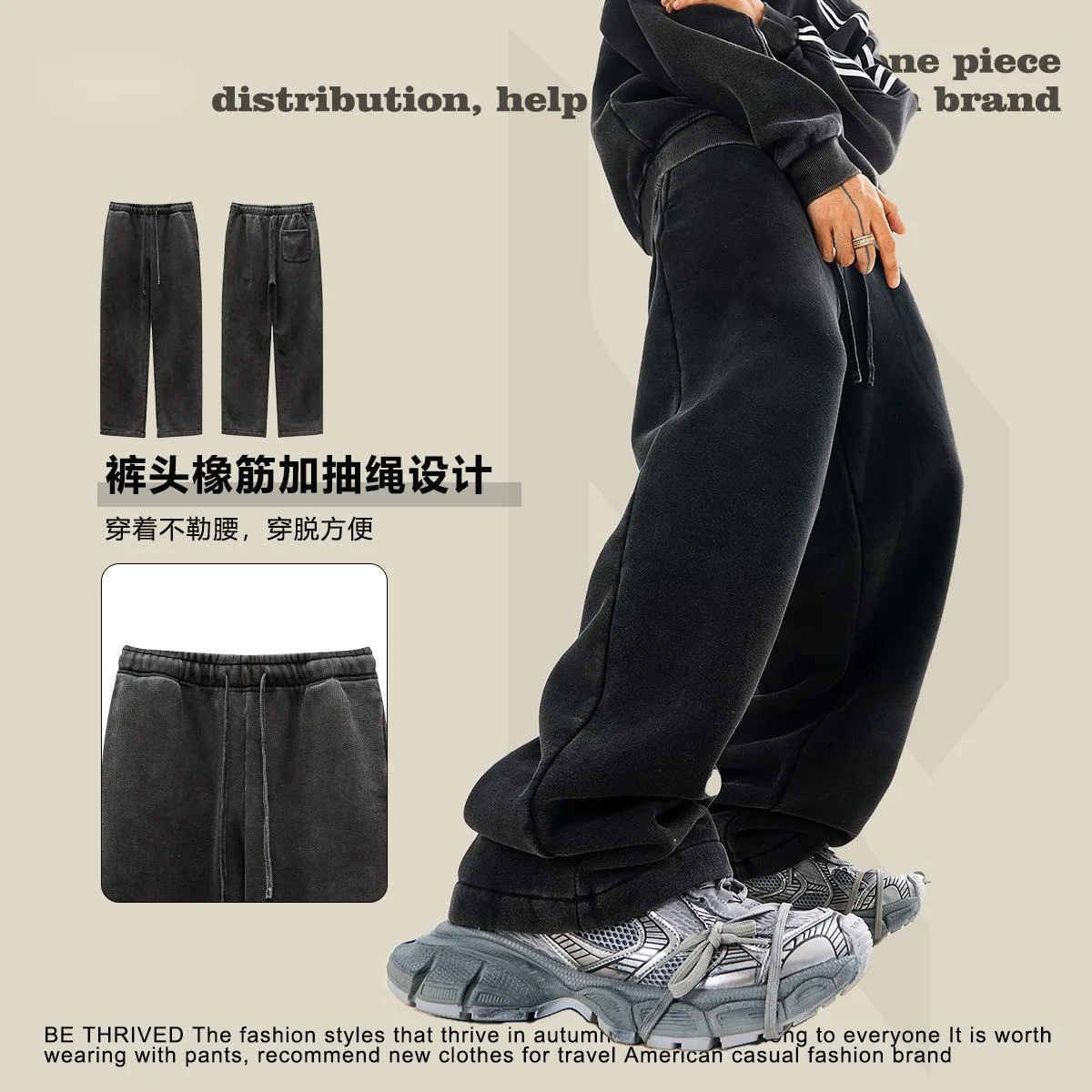 Мужская одежда, осень-зима 2024, молодежные повседневные спортивные вязаные спортивные штаны на флисовой подкладке, прямые брюки, мужские потертые спортивные штаны VSVN