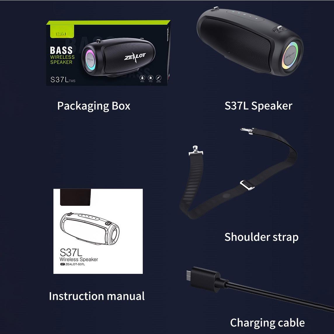 Портативный Bluetooth-динамик S37L мощностью 40 Вт с выходной мощностью Bluetooth-динамик с превосходными басами HIFI-динамик 29.7*12.8*13.2cm чёрный