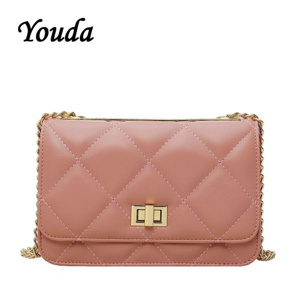 youda new solid color ladies pu material mobile phone pouch classic simple style women's shoulder bag chain strap messenger bags