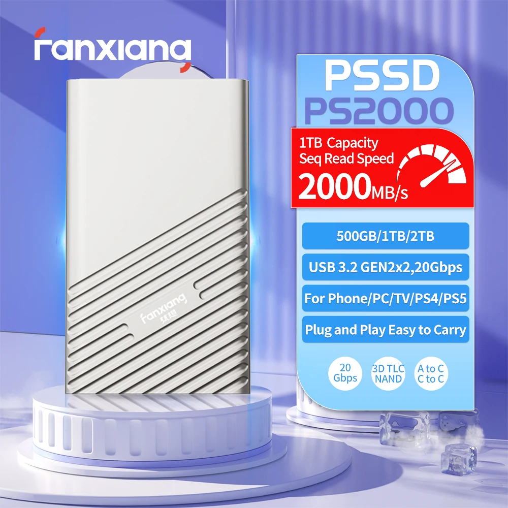 Портативный SSD Fanxiang P106/PS2000 500 ГБ 1 ТБ 2 ТБ 560/2000 Мб/с USB3.2 Gen2 внешний твердотельный накопитель PSSD для PS5, ноутбука, настольного компьютера