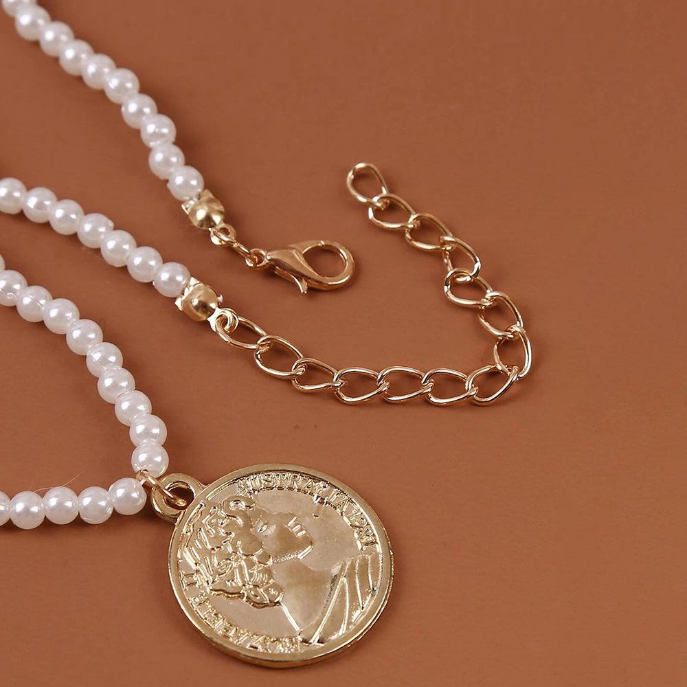 Портретное ожерелье с круглой монетой и жемчугом, круглая бусина из бисера, простая цепочка на шею, цепочка на ключицу белый