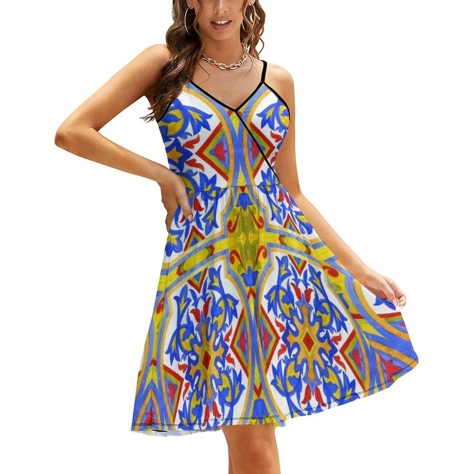 Португальская плитка azulejo. Платье на бретельках женская одежда роскошное платье