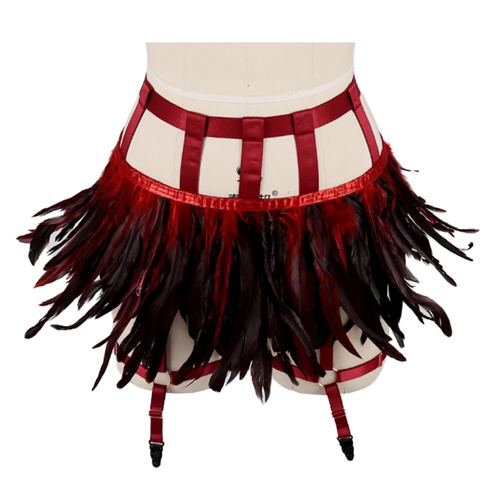 Портупея с перьями, пояс для чулок, женское тело, готическое нижнее белье, подвязки, Сексуальное белье готическое портупея, подвязки для ног