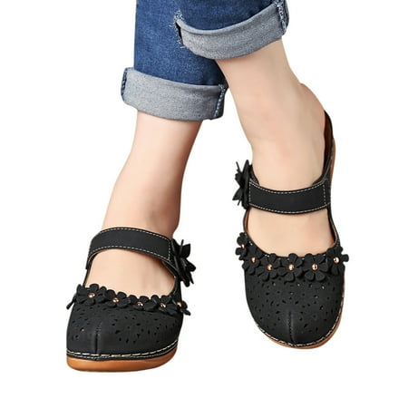 A1 new home gifts for home Sandals For Women Ladies Girls Comfortable Ankle Hollow Round Toe Wedges Slippers Pu Black
