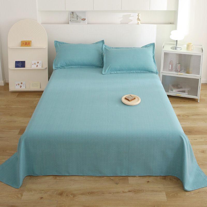 Постельное белье Осень Стиранный хлопок Цельный Стиль Инс Минималистичный Однотонный Студенческое общежитие Односпальный Двуспальный Покрывало Пододеяльник Комплект из четырех предметов 120 × 230cm (thin Bed Sheets single piece) Green
