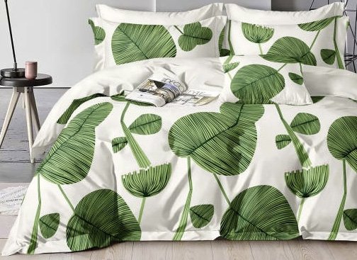 2-спальный, поплин, пододеяльник 175x215 см, простыня 160x200 см, наволочка 70x70 см, белый/зеленый