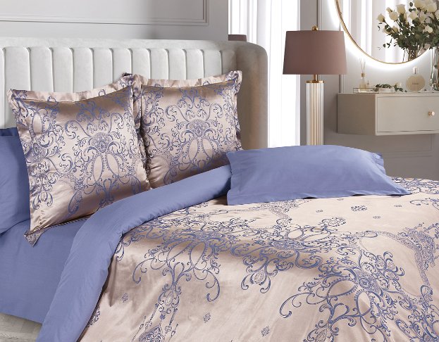 семейный, сатин-жаккард, пододеяльник 145x215 см, простыня 220x240 см, наволочка 50x70/70x70 см, синий