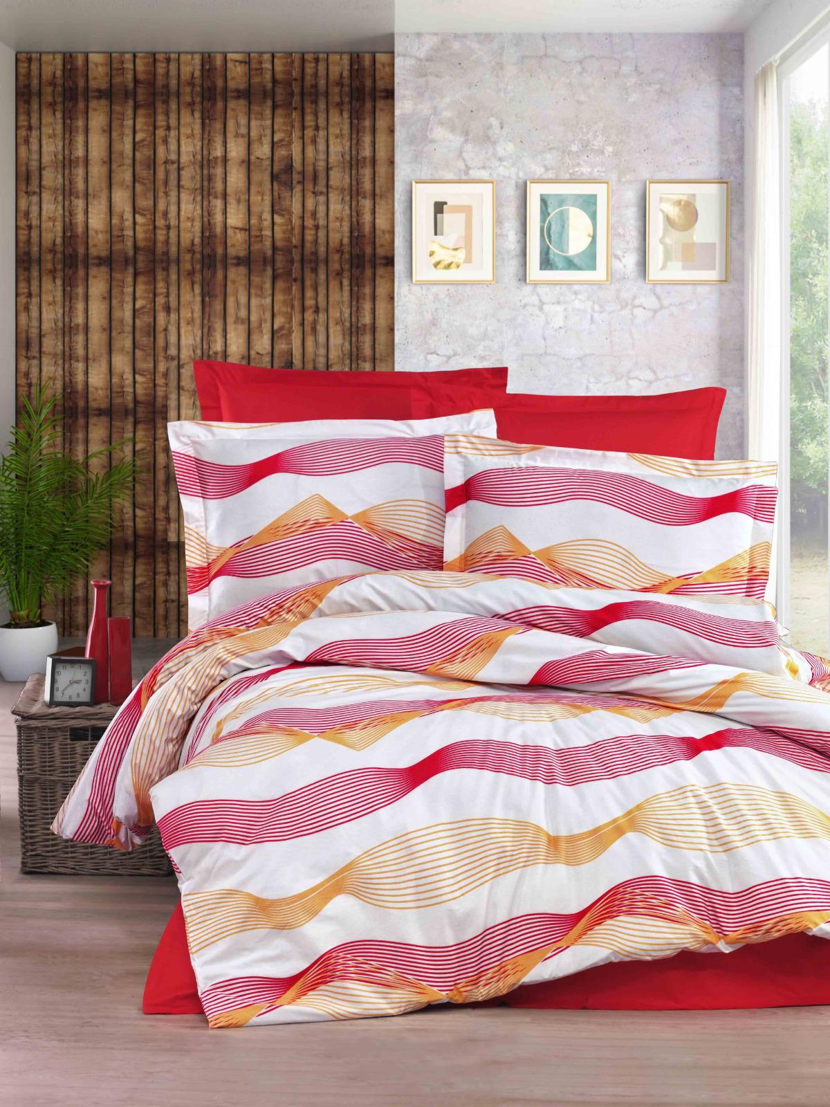 Постельное белье CottonTwill Ранфорс Дидим, оранжево красные волны Турция Семейный 2 х 145х215 см ( FB17044CT)