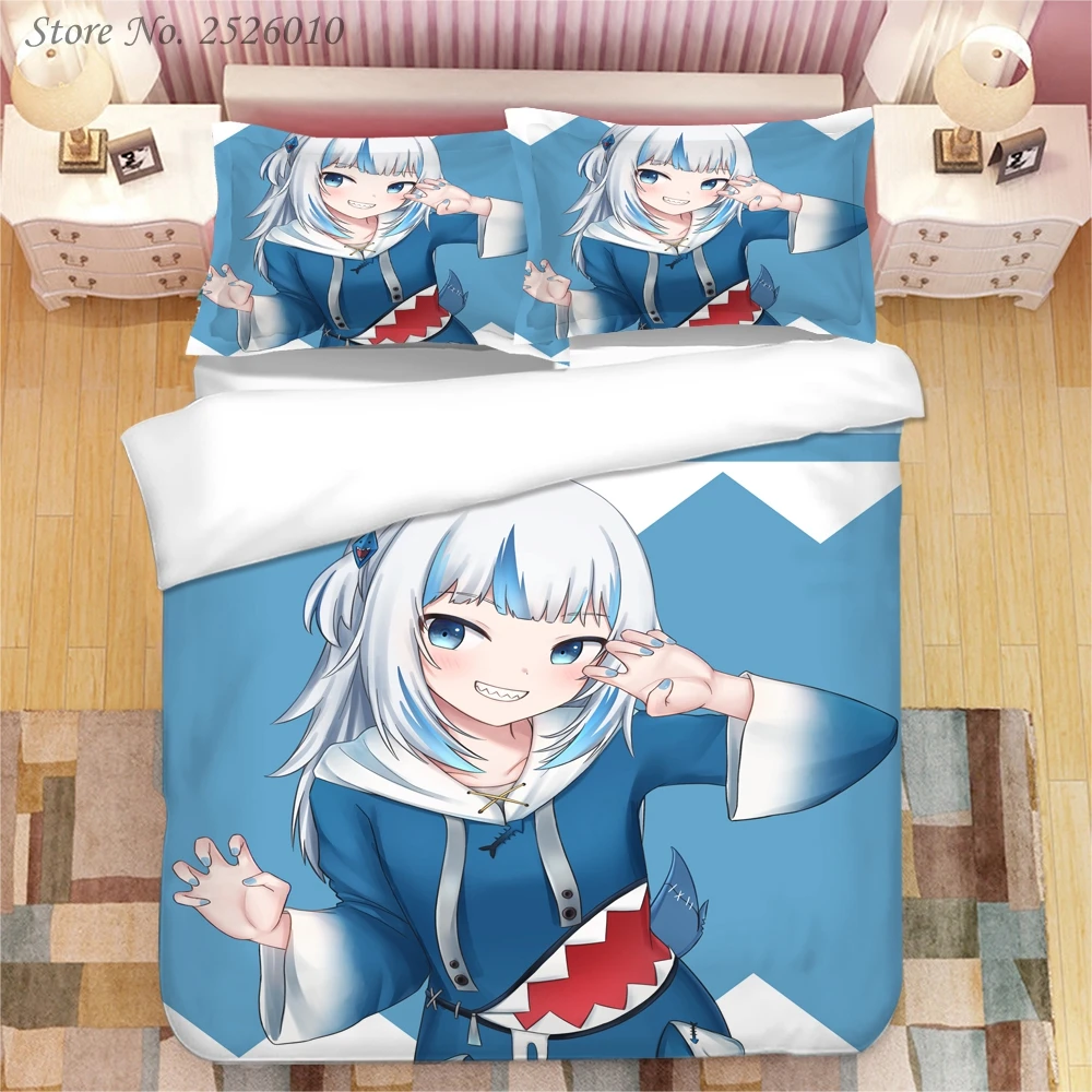 Постельное белье Hololive VTuber Gawr Gura с 3D принтом, Королевский пододеяльник, наволочка, чехол, покрывало, постельное белье 03