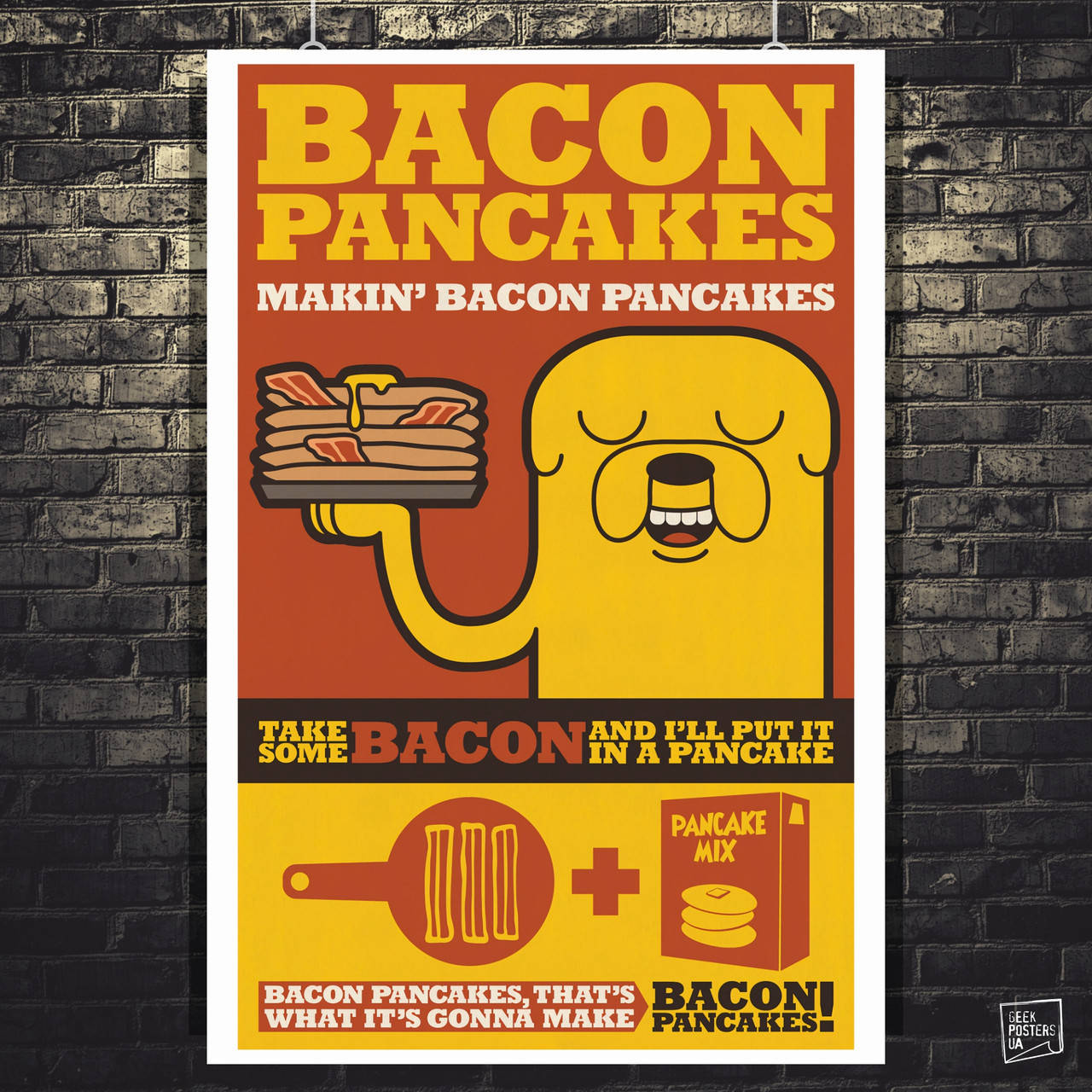 Постер Время Приключений, Adventure Time (bacon pancakes). Размер 42x27см (A3). Матовая бумага