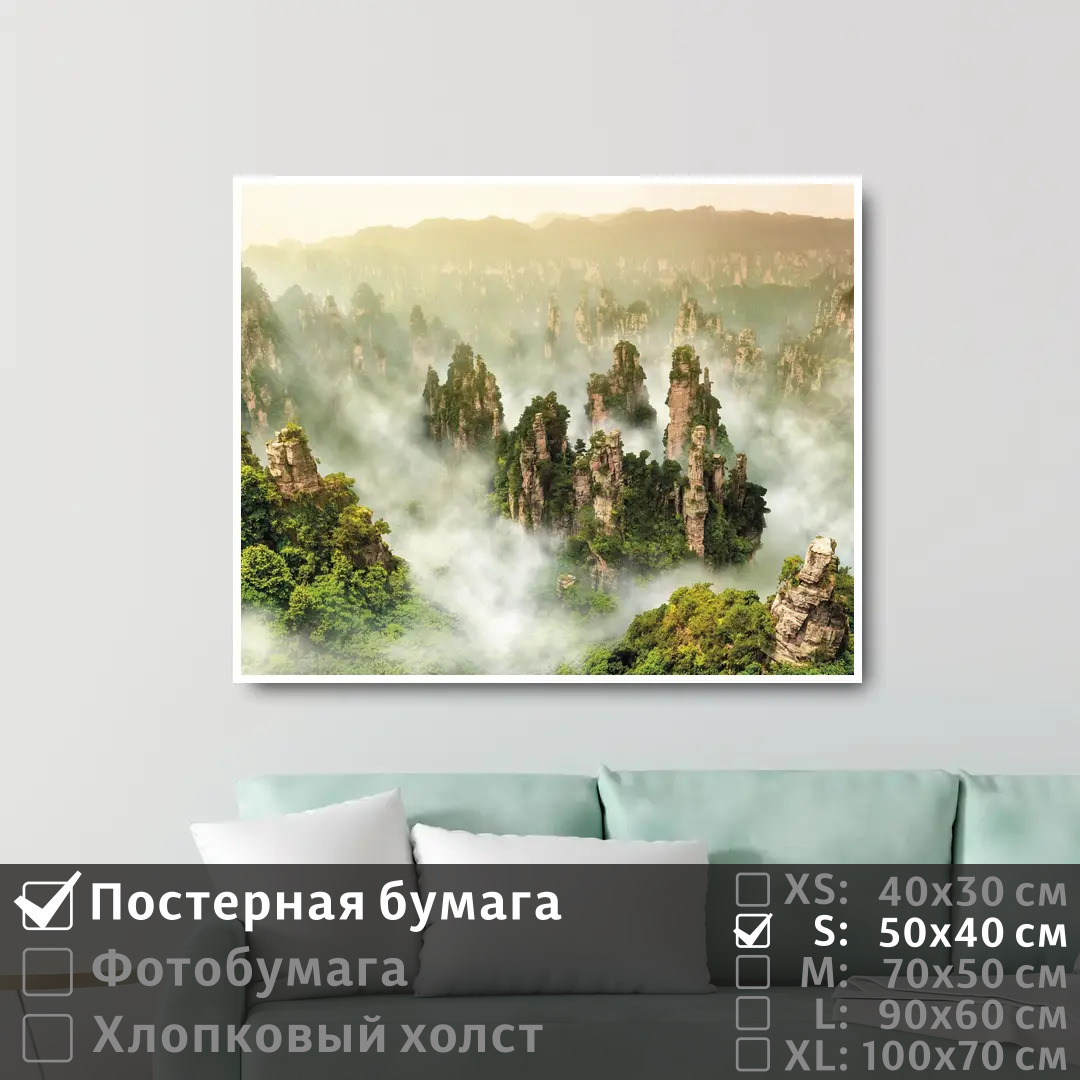 Постер на стену ПолиЦентр Холм в тумане 50х40 см, ХолмВТумане