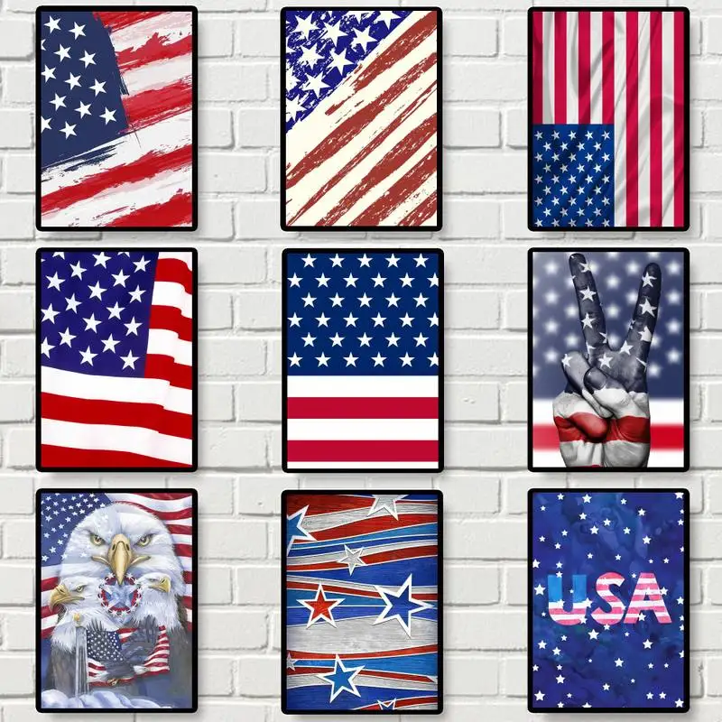 Постер с американским флагом США, печать на стене, маленькие украшения для гостиной и дома