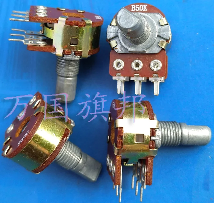 Потенциометр WH148 B50K, вал оси 10 шт./лот, двойной, шесть футов, короткий хвостовик 15 мм