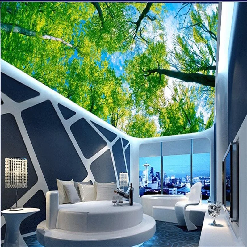 Потолочные Настенные бумажные 3D обои на заказ, настенные 3D-обои для потолка, деревьев, для гостиной, кухни, спальни, фото обои