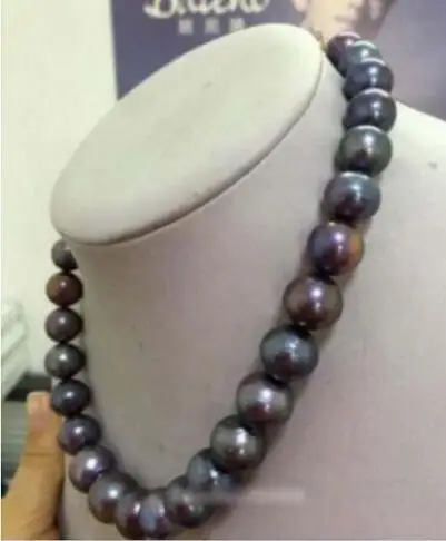 Потрясающее 10-11 мм круглое огромное ожерелье из таитянского черного жемчуга 18 дюймов AAA