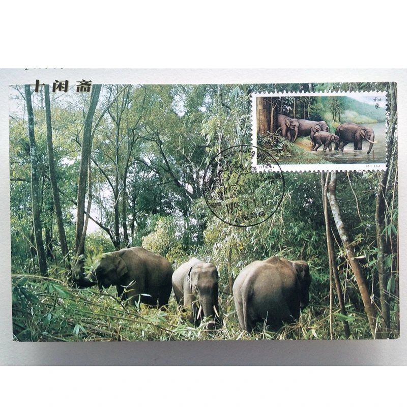 Почтовая открытка с изображением азиатского слона Menghai, экстремальный лист 1995-11, набор штампов из 2 полноценных, на первый день, сценическая ...
