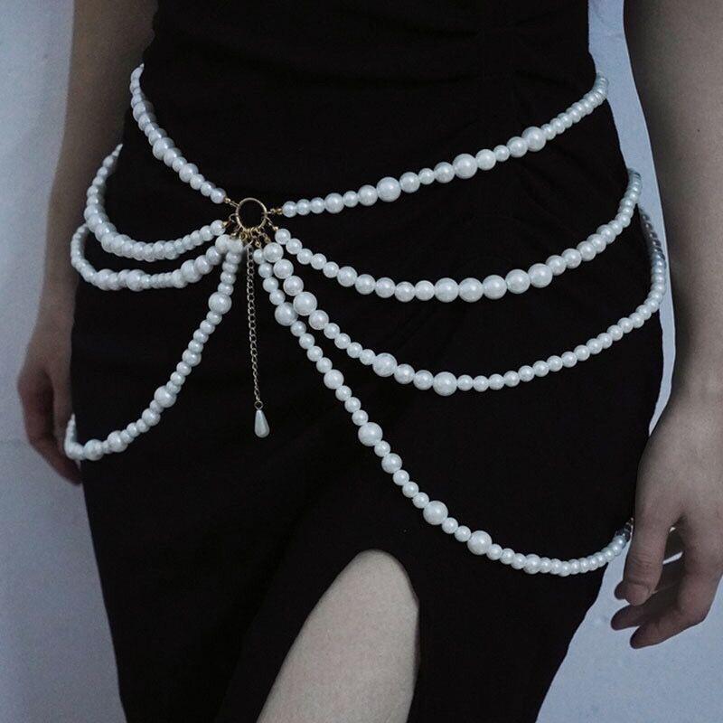 Поясная цепочка, толстая и тонкая, с жемчугом, многослойная, с кисточками, с боковой маятниковой цепочкой, поясная цепочка, ювелирные изделия, персонализированный пояс белый