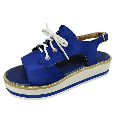 Alueeu ladies shoes casual Ladies Fashion Solid Color Suede Casual Large Size Fish Mouth Front Strap Platform Sandals Blue 39