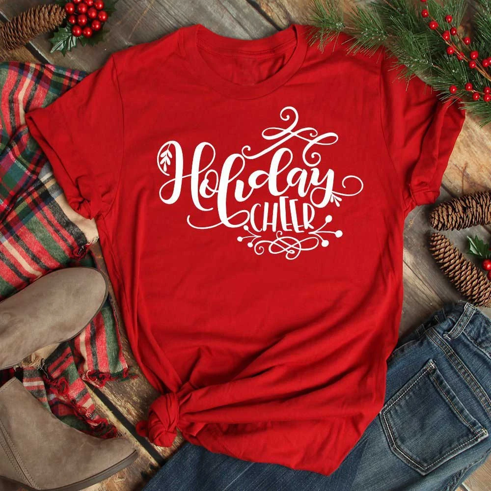 Праздничная Рождественская футболка Cheer, модная женская одежда с красными буквами, топ из 100% хлопка с коротким рукавом в стиле унисекс, футб...