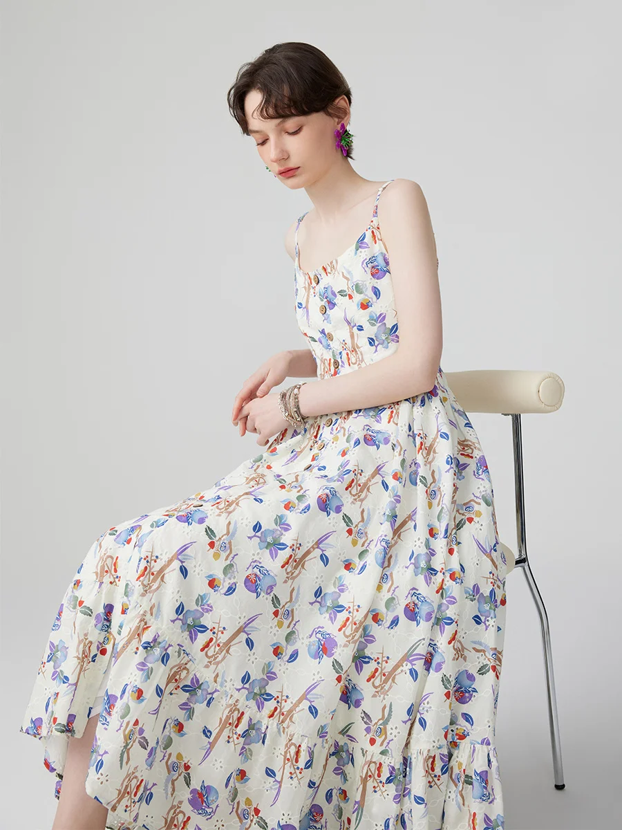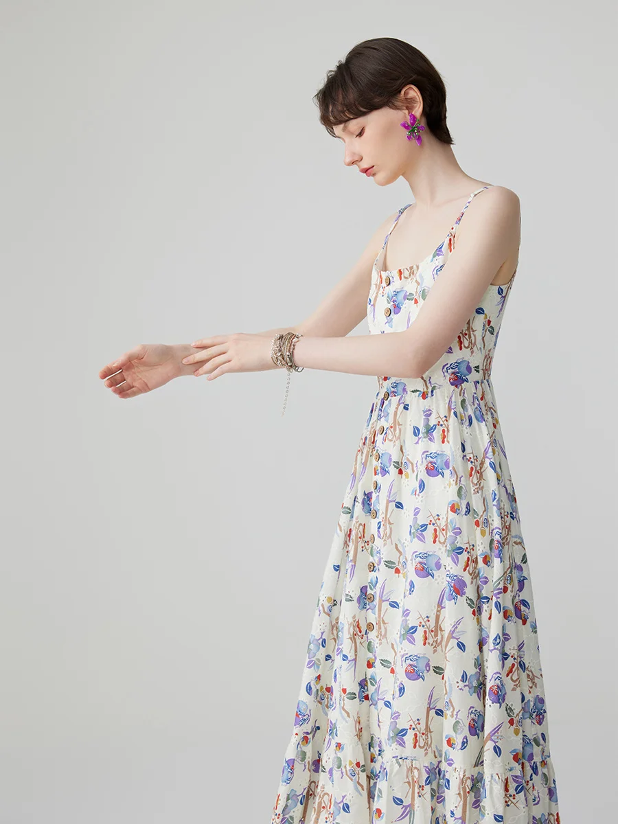Праздничное платье-трапеция на бретелях с вышивкой и принтом, новинка 23 на лето