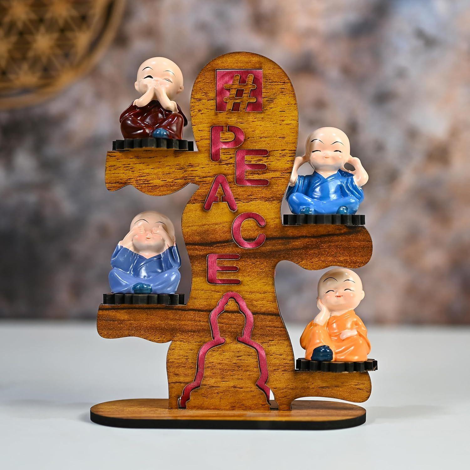 Предметы для украшения приборной панели автомобиля – Набор из 4 полимерных фигурок маленьких Будд-монахов на деревянной подставке | Милые красочные монахи для дома, офисного стола и в подарок
