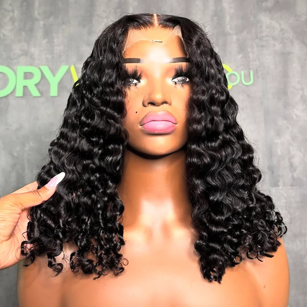 Deep Wave Bob 13x4 4x4 Lace Frontal Human Hair Wigs Brazilian Remy 100% Human Hair Natural Black Short Curly Bob Wig For Women